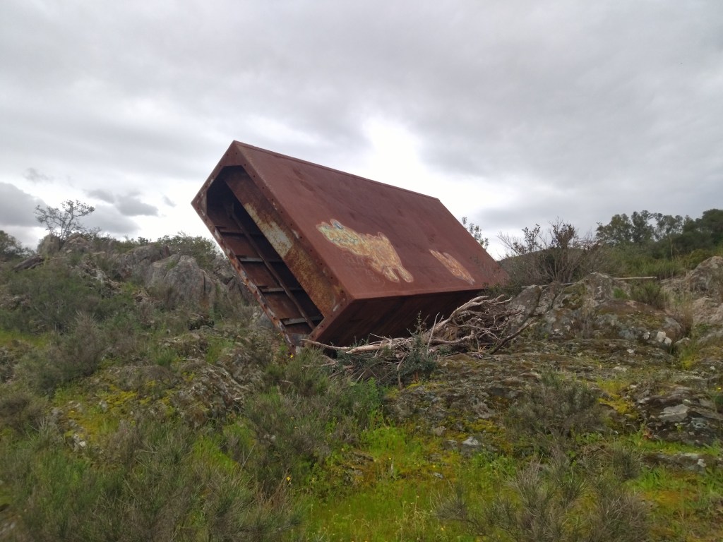 On a walk along the River Guadiana near the town of Mértola, in an area of biodiversity, I discovered a huge metal container on top of a small hill. The object, with its strong and aggressive presence, had an impressive impact that contrasted greatly with the surrounding natural environment. What brought the container to this unusual place was probably one of the Guadiana’s historic floods – referring to a relationship between the flood as an aggressive and uncontrollable natural phenomenon, and the container as an echo/memory of it. Or, beyond that, to a curious relationship between the Natural and the Unnatural – an alien object being “exhibited”, almost as if it had a meaning in this place – How far is it a disturbance and how far is it a consequence? To what extent does it influence the environment and to what extent is it influenced by it?