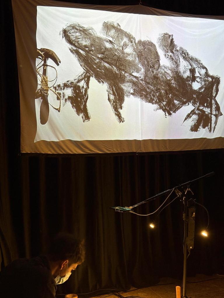 Founded in 2020 and based in Lisbon (PT), Triplo Salto Mortal is an interdisciplinary trio exploring the shifting relationships between image, sound, objects and gesture in acts of free improvisation. The group creates performances that open unpredictable spaces for collective imagination and new ways of sensing and relating. Its practice is driven by a urgency to combine different languages and ways of thinking, valuing diverse perspectives and deepening human interaction through the use of “technological” tools.
